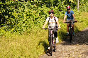 After catching your breath from waterfall jumping, you will be provided with high quality mountain bikes and gear for your trek towards the Balsa River. Feel free to use the bathrooms and change rooms to change into your biking clothes. You will also be provided a snack and refreshments before heading out on your bike ride.